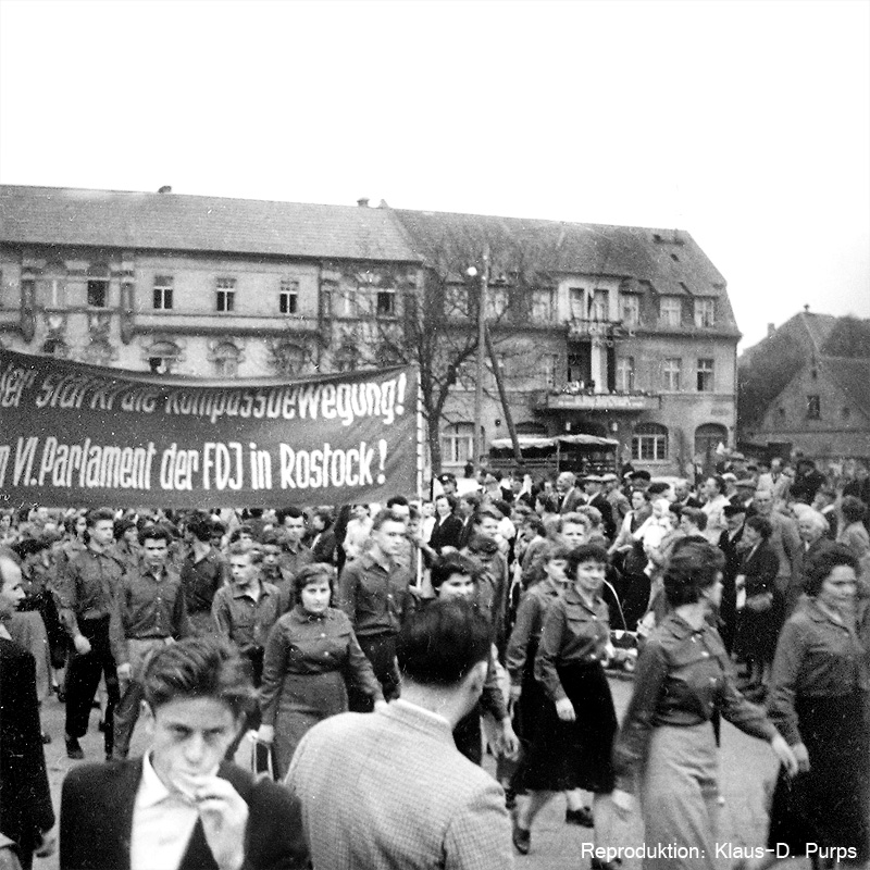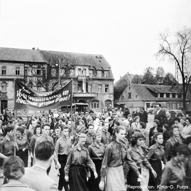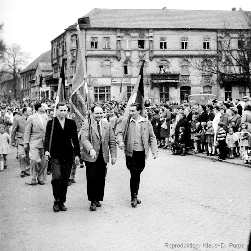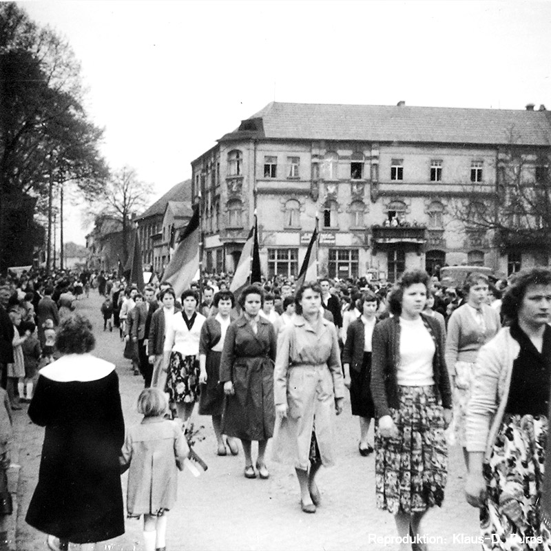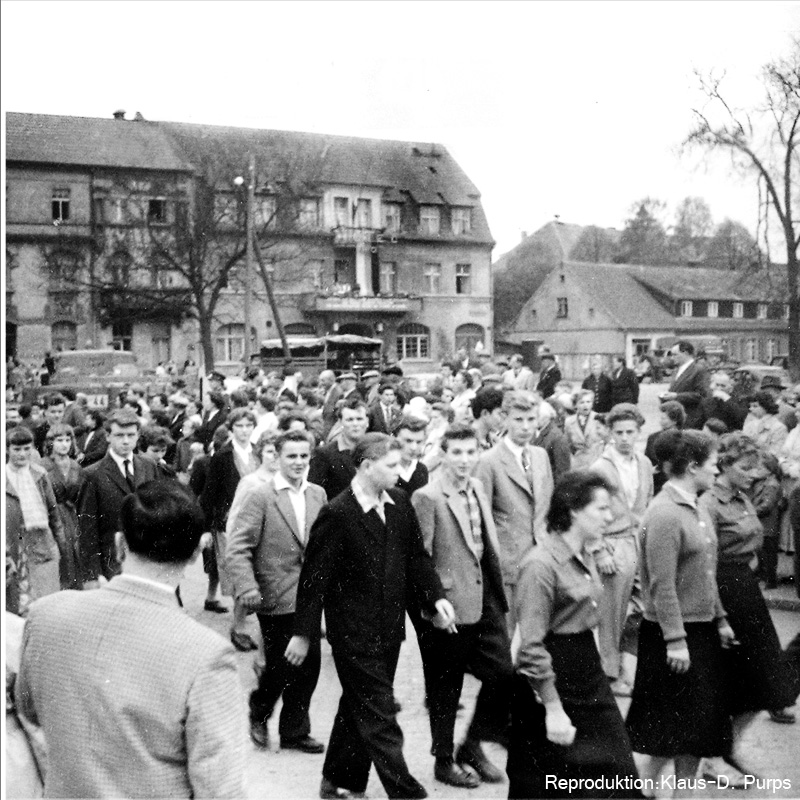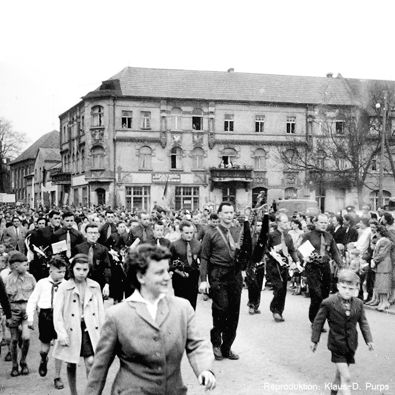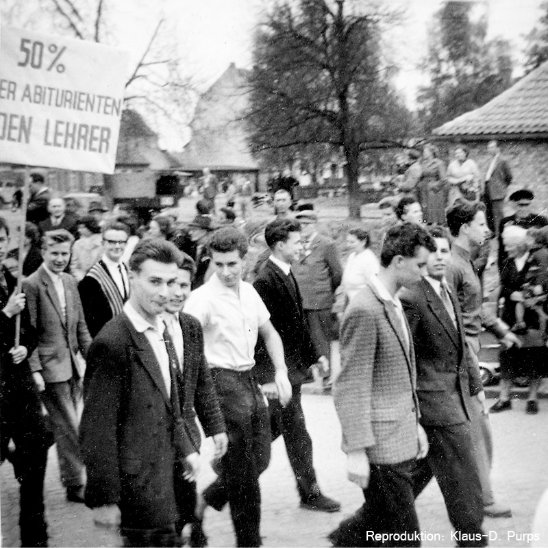 Die Bilder vom Maiumzug 1959 sind Reproduktionen von 6x6-Aufnahmen, die vor vielen Jahren in einer Ausstellung der Schule zu sehen waren.